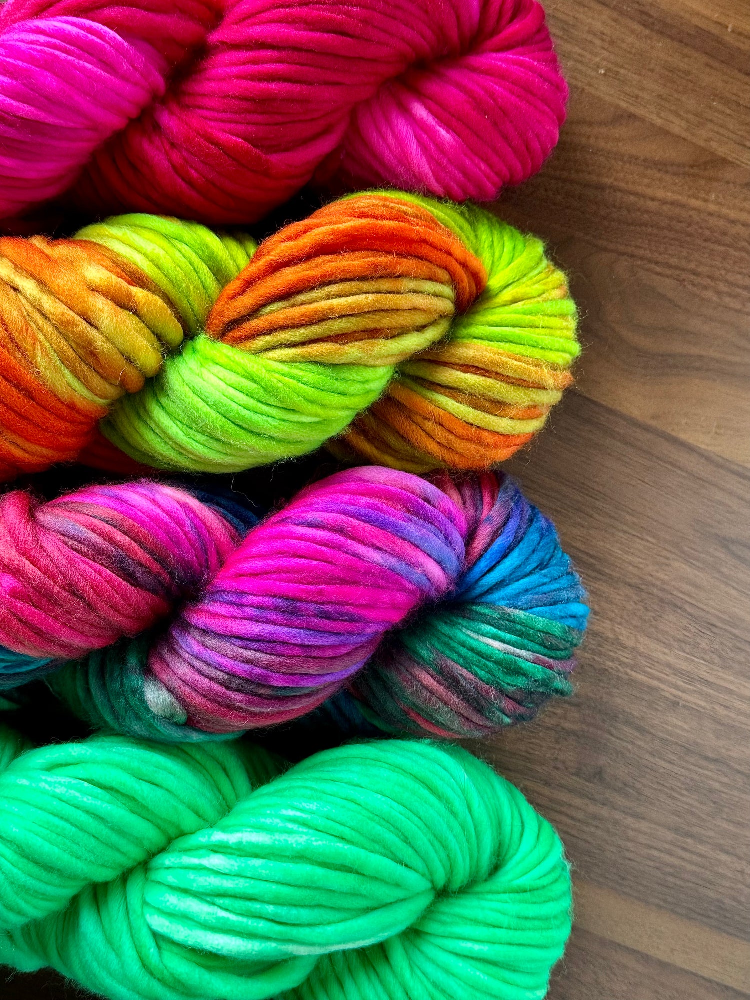 I dye yarn inspired by the rich hues of fall... plus some neons and pastels every so often. I also offer faux fur poms made by yours truly and some other cute knitting notions whenever they catch my eye. I'd love if you would subscribe to my newsletter for vibrant hues and insider news, straight from the tap. Plus, get 20% off your first order just for signing up!