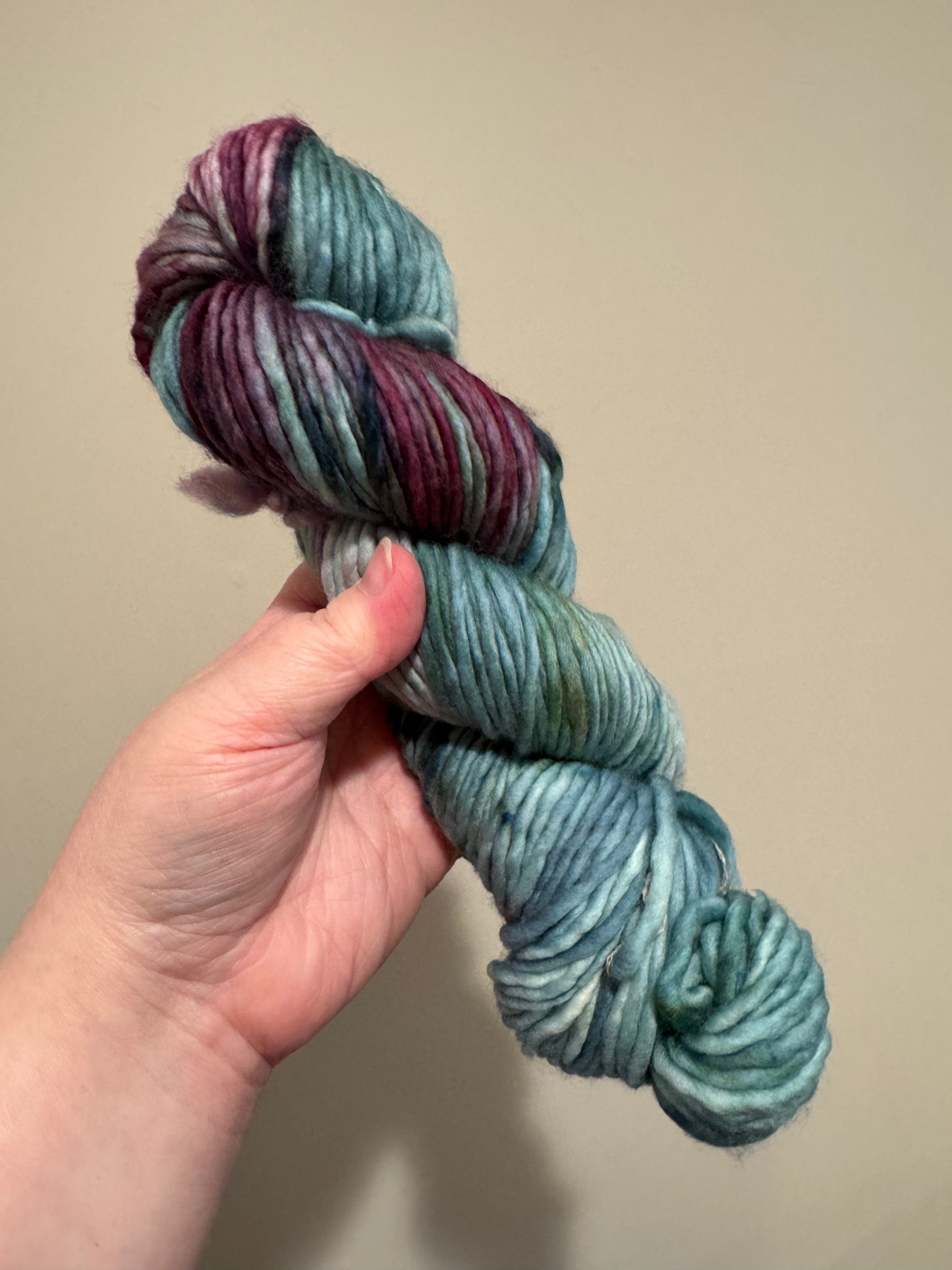 This yarn is hand-dyed with a mega squish factor. Though this yarn is superwash, I always recommend hand-washing wool items in lukewarm water with a wool shampoo and laying flat to dry. Avoid intense friction or wringing with any wool product. There may be slight color bleed in the first couple washes.